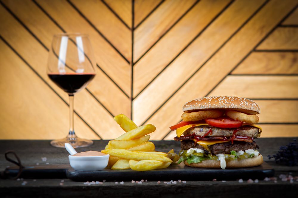 1x Burger (550g) 1x Portie Cartofi (150g) 1x Sos la Alegere (70g) 1x Bautura Racoritoare / Bere Tuborg 0.5l